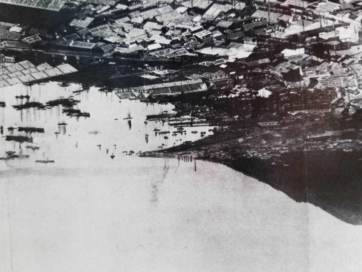 この「第一船溜り」とは、岸壁が未完成だった時代に入港する大型船舶の貨物の積込みや荷揚げは艀に頼っていましたが、港内に数カ所あった艀の係留地のひとつで、全岸壁が昭和6年に完成した後も永く昭和後期まで船混みの時などには欠かせない役割を果たしていました。
